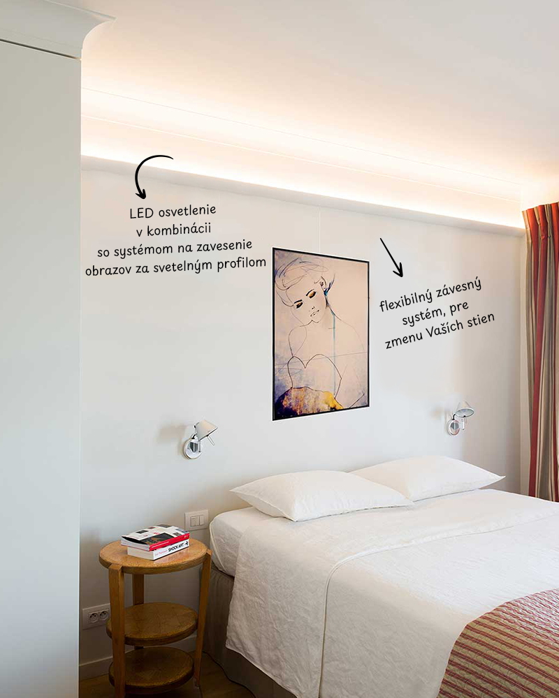 Multifunkčnosť (pri verzii LED): Jedným prvkom vyriešite vešanie obrazov aj náladové ambientné osvetlenie miestnosti.