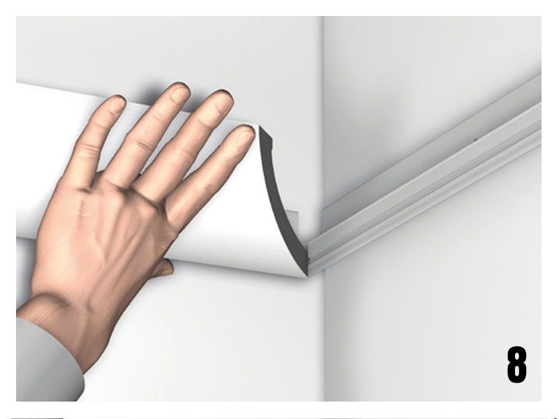 Vlastné lišty: Akákoľvek iná lišta, pokiaľ má výšku minimálne 35 mm, aby lištu Deco Rail spoľahlivo prekryla.
