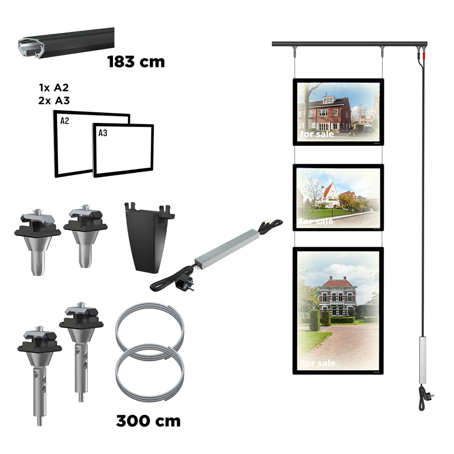 2x A3 Display It LED panely (17 W): Výškovo nastaviteľné, s možnosťou použitia na výšku aj na šírku.
