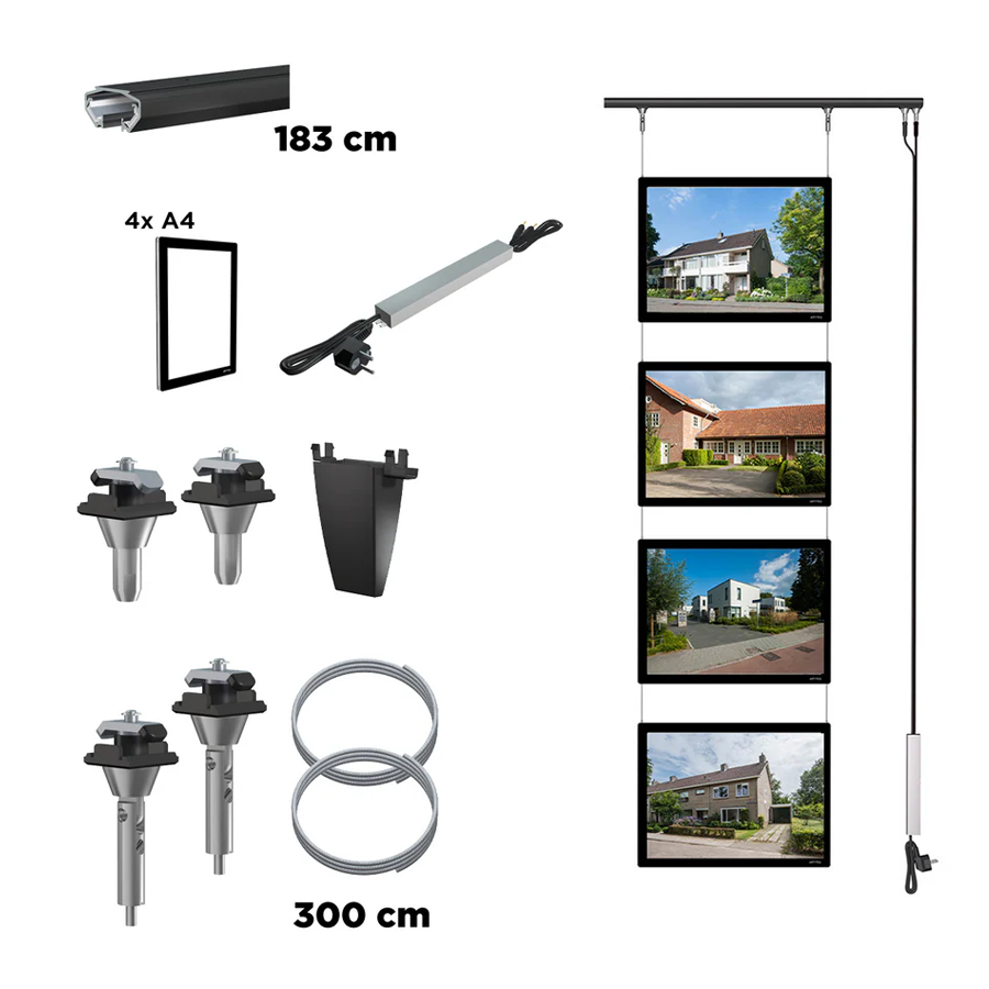 Tento kompletný set obsahuje všetko, čo potrebujete na okamžité zariadenie vášho výkladu, výsledkom čoho bude profesionálna, elegantná a pôsobivá prezentácia.