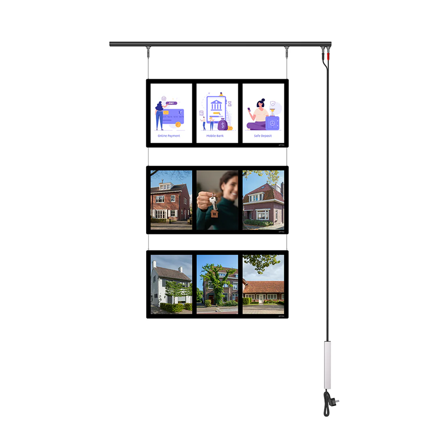 Profesionálny vzhľad: Sú ideálne pre miesta ako realitné kancelárie alebo výklady, kde je potrebná čistá a elegantná prezentácia viacerých ponúk pod sebou.