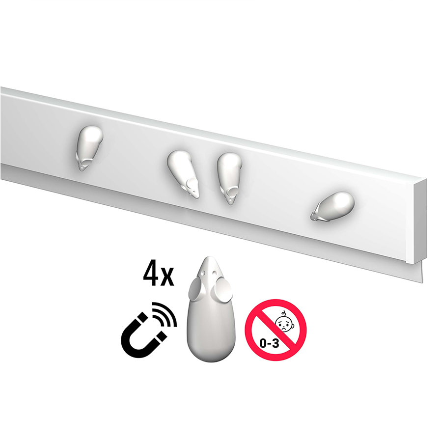 V balení dostanete aj 4 magnetky v tvare bielych myšiek.