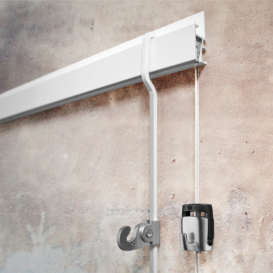 Lišta R30 ponúka možnosť vešania obrazov pomocou závesných laniek aj tyčí. Horná časť lišty má otvorený tvar písmena „J“, do ktorého je možné tyč S-Rod zaháknuť na ktoromkoľvek mieste. Tyč sa do lišty vkladá zhora. Po zavesení tyče na ňu môžete pripevniť príslušný háčik a okamžite začať vešať obrazy. Tyč sa po lište posúva veľmi ľahko, čo umožňuje rýchlu zmenu polohy obrazov.