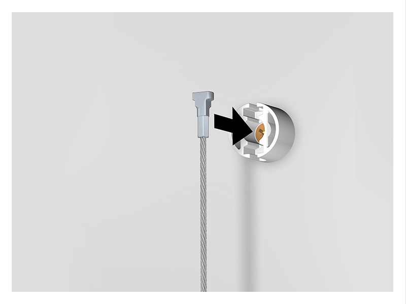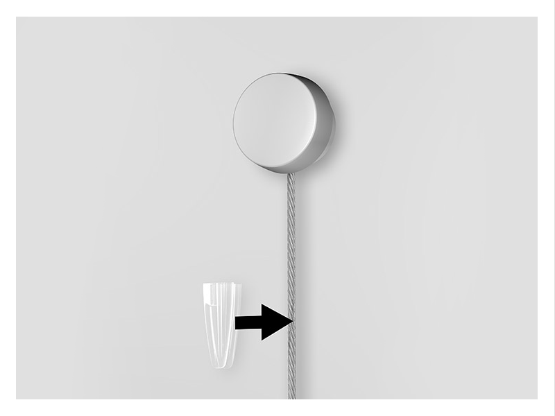 Nástenný klip + skrutka a hmoždinka: Umožňuje pripevniť hornú časť lanka priamo na stenu jedinou dierou.
