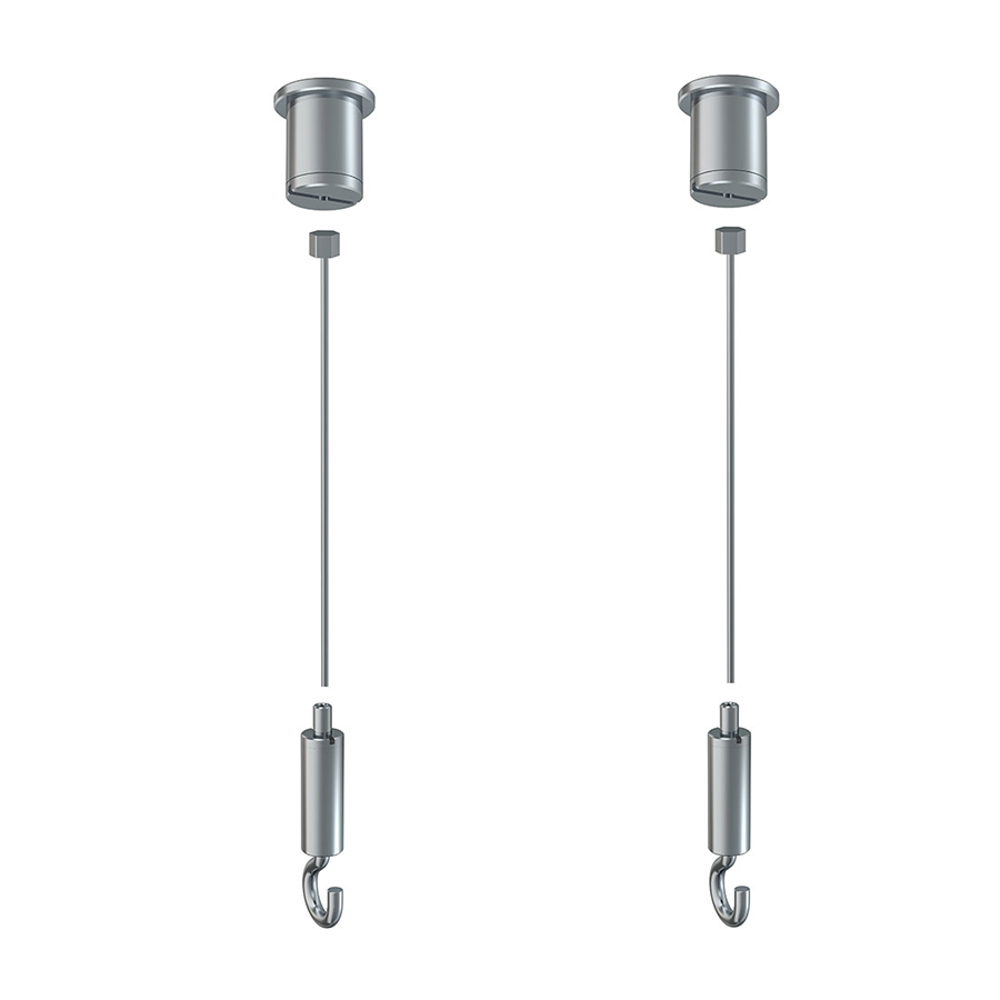 Spoločnosť Artiteq ponúka hotovú závesnú sadu pozostávajúcu zo stropnej krytky, oceľového lanka a háčika na lanko. Môžete si však zvoliť aj vlastnú konfiguráciu: vyberte si preferovanú stropnú krytku, typ oceľového lanka a následne vhodný háčik na zavesenie vášho panelu.