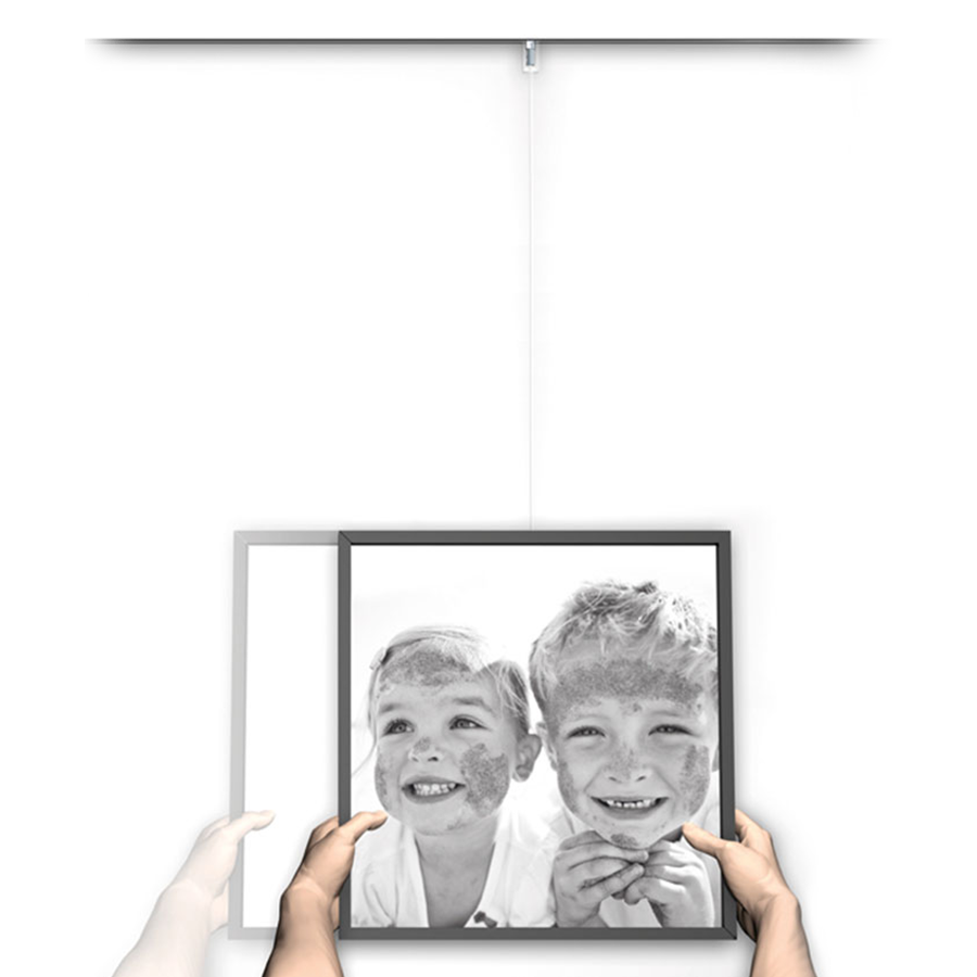 - Systém je navrhnutý pre extra jednoduché použitie, ľahko sa zasúva do lišty a umožňuje rýchle a ľahké vešanie a presúvanie obrazov.