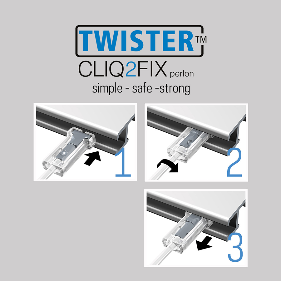 - Eliminuje riziko, že by sa perlonová šnúra vysunula alebo „vycvakla“ z lišty v dôsledku jej navíjacieho/sťahovacieho efektu.