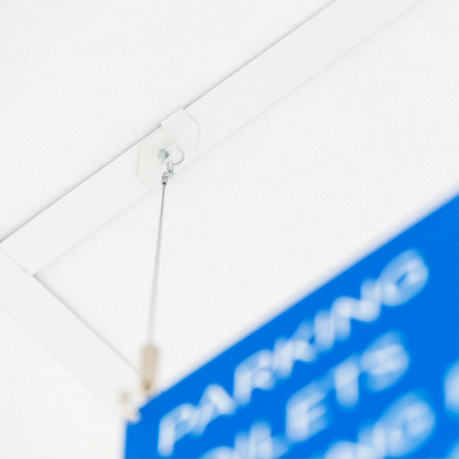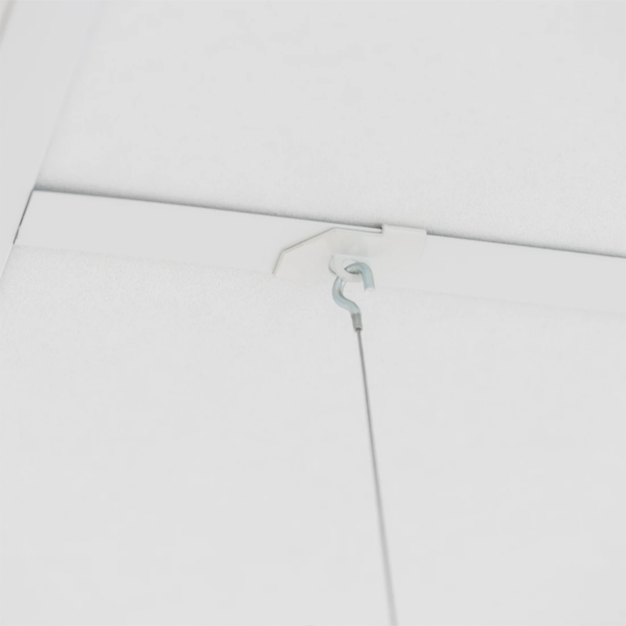 24 mm klip na kazetový strop sa jednoducho pripevňuje priamo na profil stropu. Na klip sa následne zavesí oceľové lanko s háčikom. Pomocou háčika pripevneného na oceľové lanko môžete zo stropu zavesiť požadovaný svetelný panel. Háčik na lanko je vďaka auto-grip mechanizmu (samosvornému systému) ľahko nastaviteľný, čo umožňuje flexibilnú úpravu výšky.