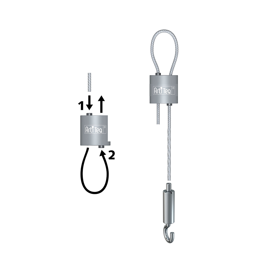 Loop Hanger zaručuje rýchlu inštaláciu bez potreby akéhokoľvek náradia. Okrem samotného vešania je systém vynikajúci aj na zabezpečenie alebo podopretie predmetov. Oceľové lanko sa vloží do mechanizmu a zaistí na mieste v dvoch krokoch, čo otvára nekonečné možnosti využitia.